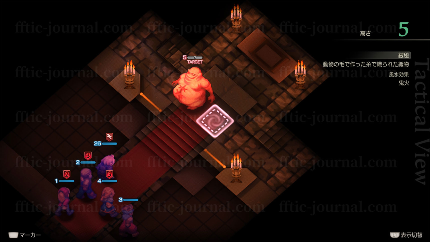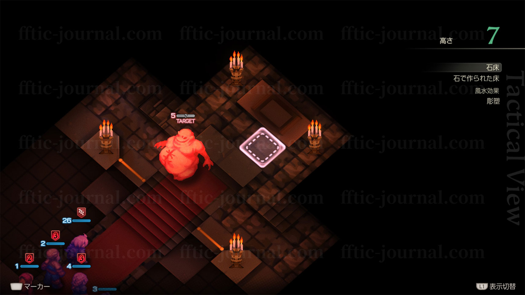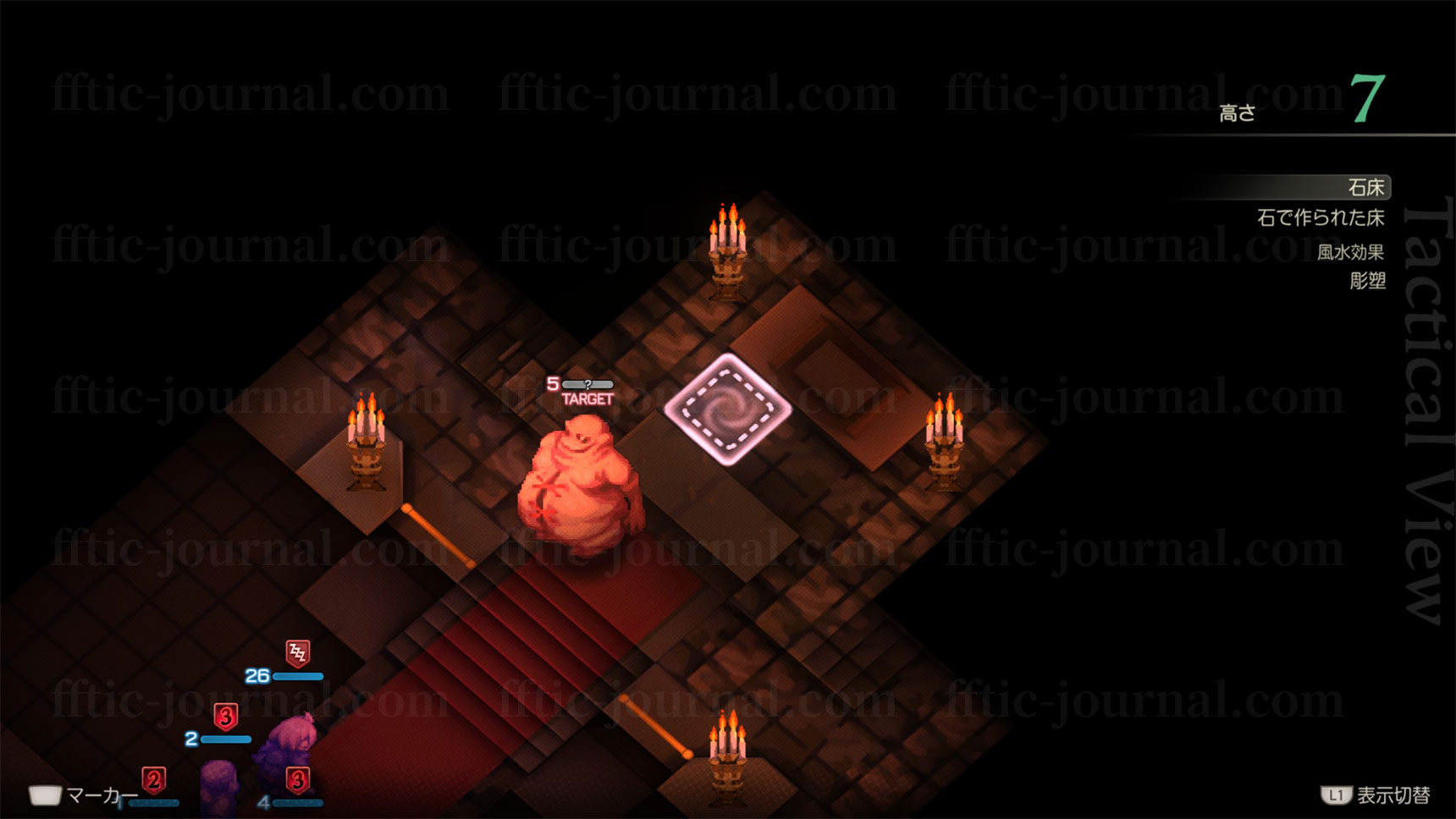 CHAPTER 2の最終ステージです。状態異常系のスキルを多数使用してくるので、あらかじめ対策しておかないと非常に難しくなります。出撃メンバー全員に「まもりの指輪(睡眠/死の宣告無効)」を装備させると動きやすくなります。