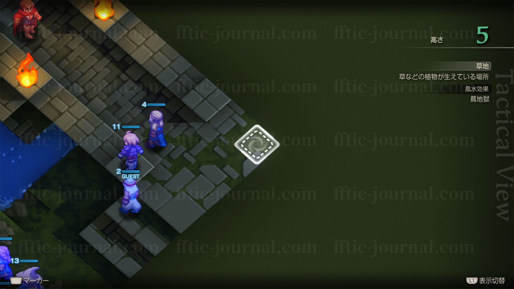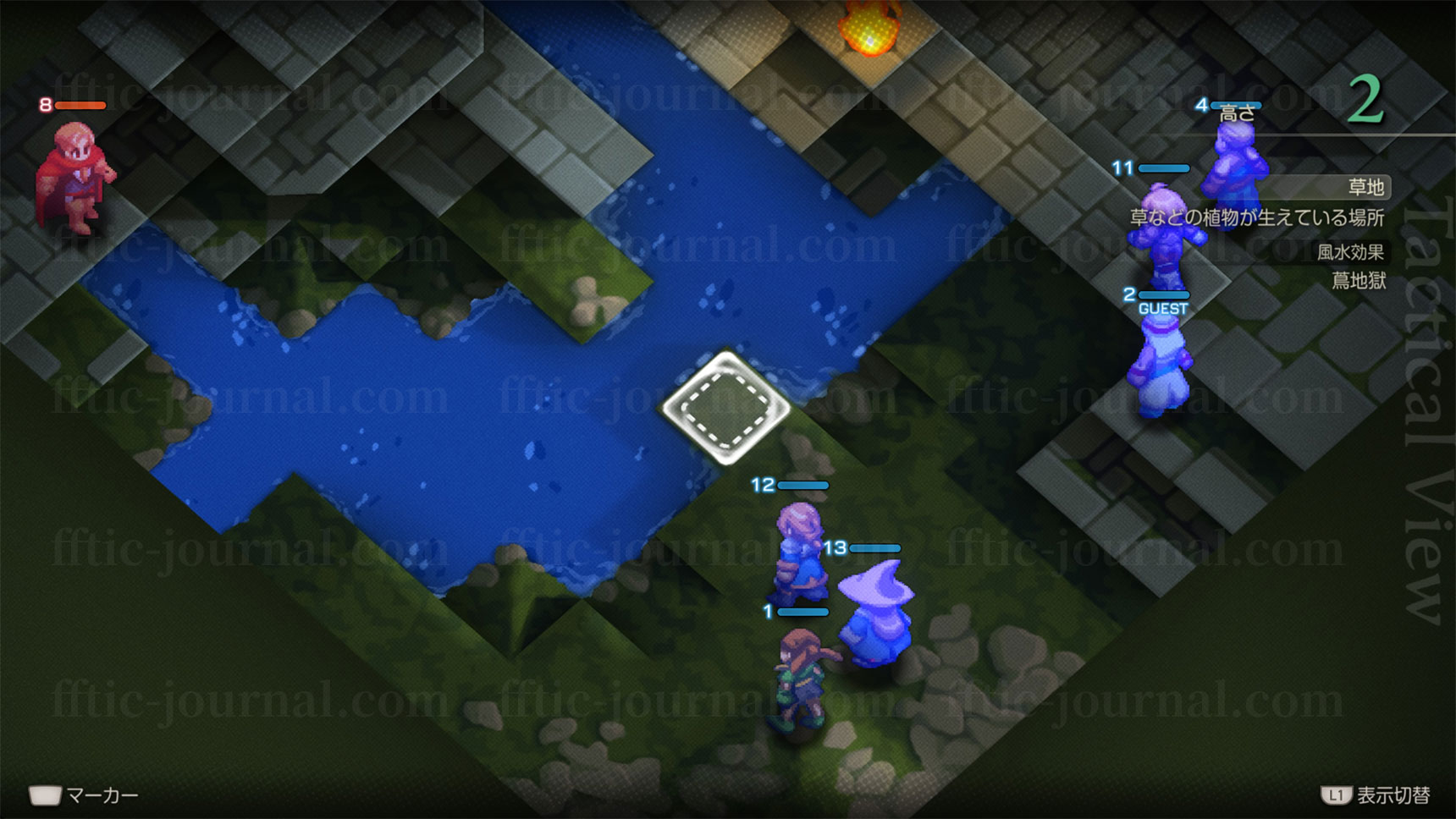 また、早めに弓使いを倒すためにも「高低差無視」あるいは頑張って「テレポ」などを習得しておくか、遠距離攻撃手段を用意しておきましょう。シンプルな編成ながら残るナイトもかなりHPが高めなので長期戦に耐えらえるようなアビリティやアイテムを準備しておく必要があります。