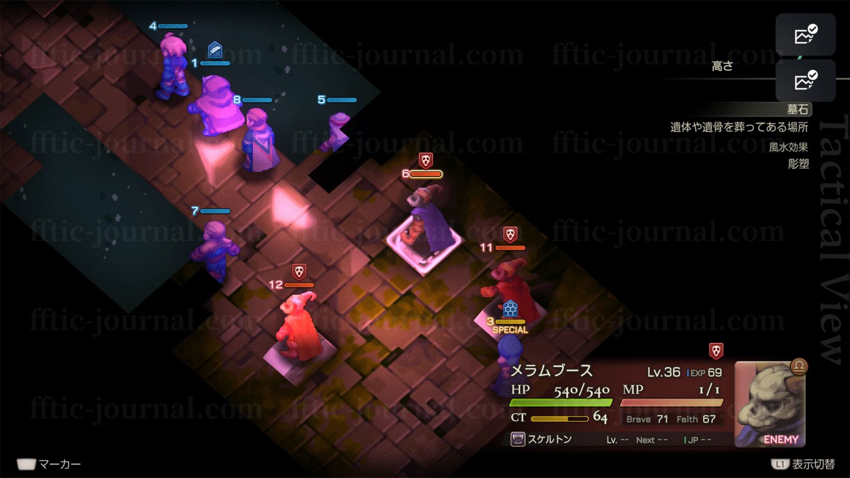 ザルエラ以外がアンデッドで構成されているため、そちらの対処自体はそれほど難しくはありません。「フェニックスの尾」「邪心封印」「石化」などで早めに処理してしまいましょう。ザルエラの方はSPEEDが早めで使用する状態異常もかなり豊富なので全てを防ぐのは厳しいです。
