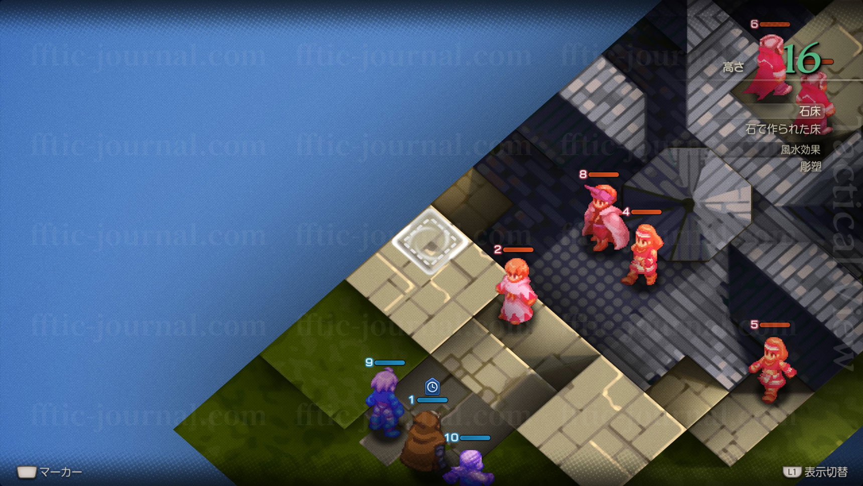 第1部隊の方は敵ユニットとの高低差がかなりあるので、高低差の影響を受けにくいユニットを配置しましょう。優先して倒したいのは白魔道士か召喚士で、火力が十分なら召喚士(巻き込めるなら隣の風水士も)、火力に不安があるなら白魔道士を狙うとクリアしやすいと思います。