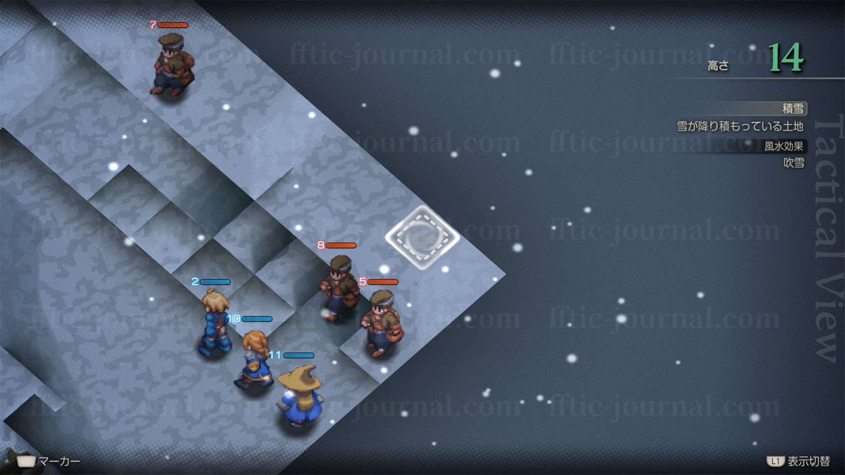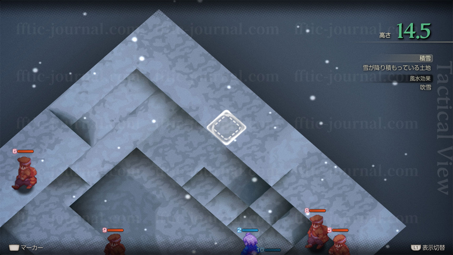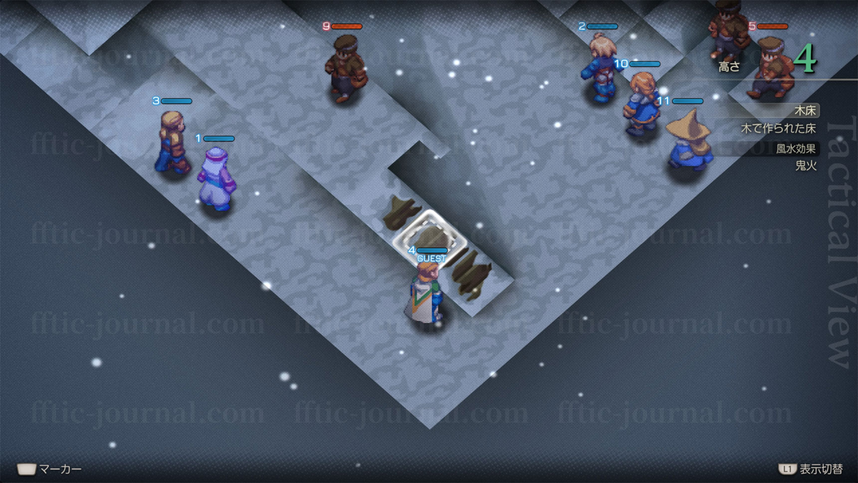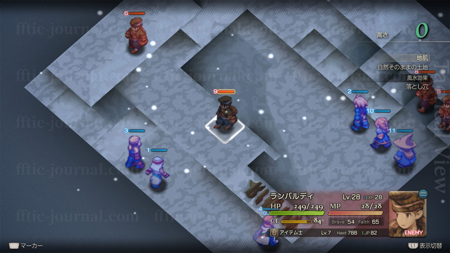 敵編成が全員銃を装備したアイテム士のみのステージです。接敵さえしてしまえばそれほど脅威ではないものの、もたもたしていると遠距離攻撃でかなりのダメージを食らいます。高低差を無視して移動あるいは攻撃する手段を用意しておきましょう。